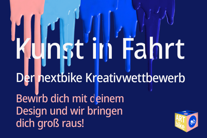 Unsere Räder werden zu deiner Leinwand! Mach mit und dein Werk könnte schon bald auf zahlreichen nextbikes durch die Straßen rollen! Pünktlich zu Beginn der kalten und grauen Jahreszeit bist du gefragt, Farbe in unseren Alltag zu bringen. Wir stellen die Leinwand und wollen in mehreren Städten eure Kunstwerke auf einen Teil der Fahrrad-Werbeflächen bringen. Jede/r kann mitmachen! Was zählt, ist eure kreative A...